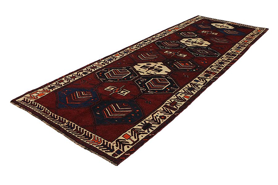 Rugs woven by the Lurs, a nomadic tribe in the mountainous Kurdish region of Southwest Iran, bordering Iraq. The Lori rugs usually have geometric shapes, often with rhombi and strictly linear scenes of the herbal and animal world. Because the areas where the Lurs live are inaccessible and isolated, they still weave with the old traditional ways, without influences from the Europeans. The centre of Luristan is Choremabad, which gave its name to the rugs woven there. Furthermore rugs have been named after the salt lake Neris.