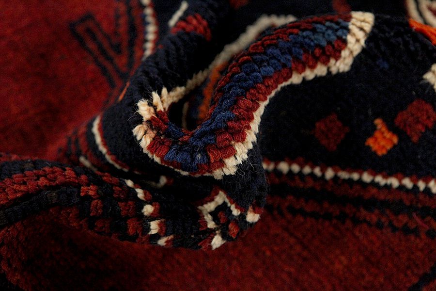 Qashqai rugs are woven by nomads who live in the mountainous areas of Southwest Persia, the provinces of Fars, Khuzestan, south of Isfahan and around the city Shiraz. Their rugs have a high knot density and a wide variety of designs, usually in deep red and blue colours. They weave rugs, Kilims and decorative textiles (ribbons, bags, etc.), which depict scenes from their lives with various representation of humans, animals, birds, trees and flowers.