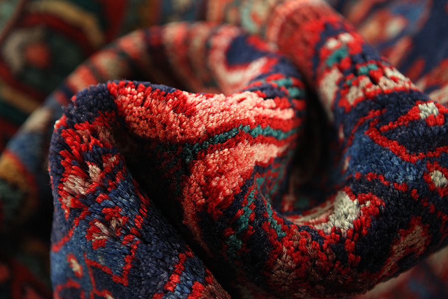 Abrash: Due to the different amount of grease in the wool and the added salt during the process of dyeing, the wool has got a varying colour absorbance. This is not very visible before weaving. During the weaving though, lines of the same colour are formed in the rug. This is called Abrash (which in Farsi means little cloud) and it shows that the wool was not manufactured using chemical means and marks the naturalness and authenticity of the rugs. Examples