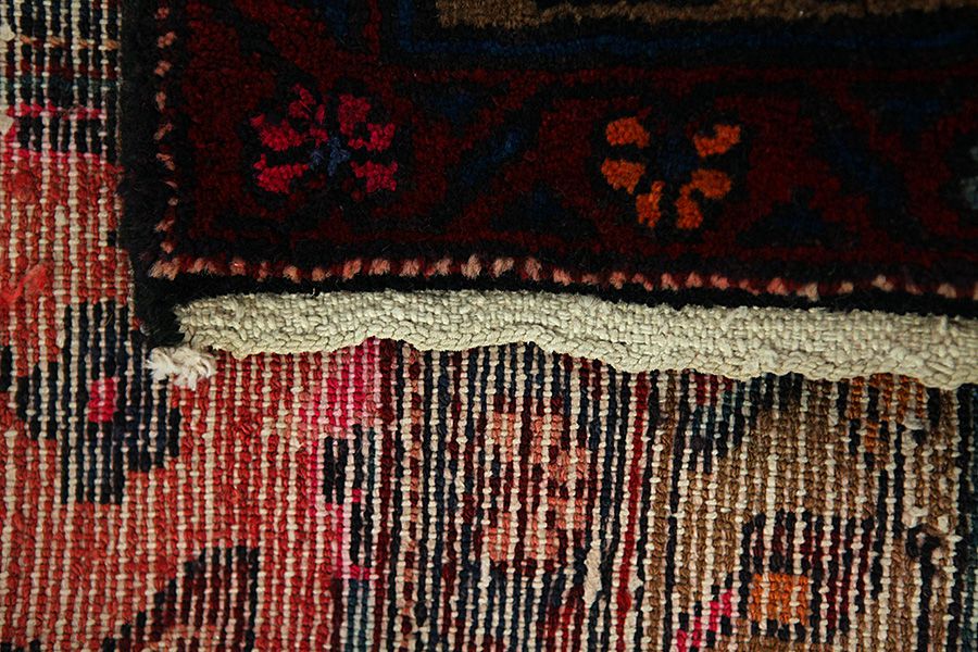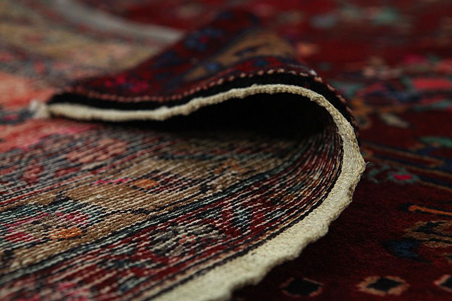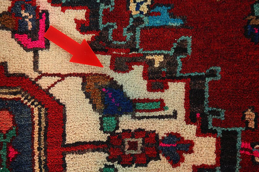 Abrash: Due to the different amount of grease in the wool and the added salt during the process of dyeing, the wool has got a varying colour absorbance. This is not very visible before weaving. During the weaving though, lines of the same colour are formed in the rug. This is called Abrash (which in Farsi means little cloud) and it shows that the wool was not manufactured using chemical means and marks the naturalness and authenticity of the rugs. Examples