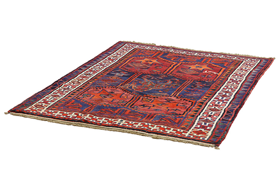 Rugs woven by the Lurs, a nomadic tribe in the mountainous Kurdish region of Southwest Iran, bordering Iraq. The Lori rugs usually have geometric shapes, often with rhombi and strictly linear scenes of the herbal and animal world. Because the areas where the Lurs live are inaccessible and isolated, they still weave with the old traditional ways, without influences from the Europeans. The centre of Luristan is Choremabad, which gave its name to the rugs woven there. Furthermore rugs have been named after the salt lake Neris.
