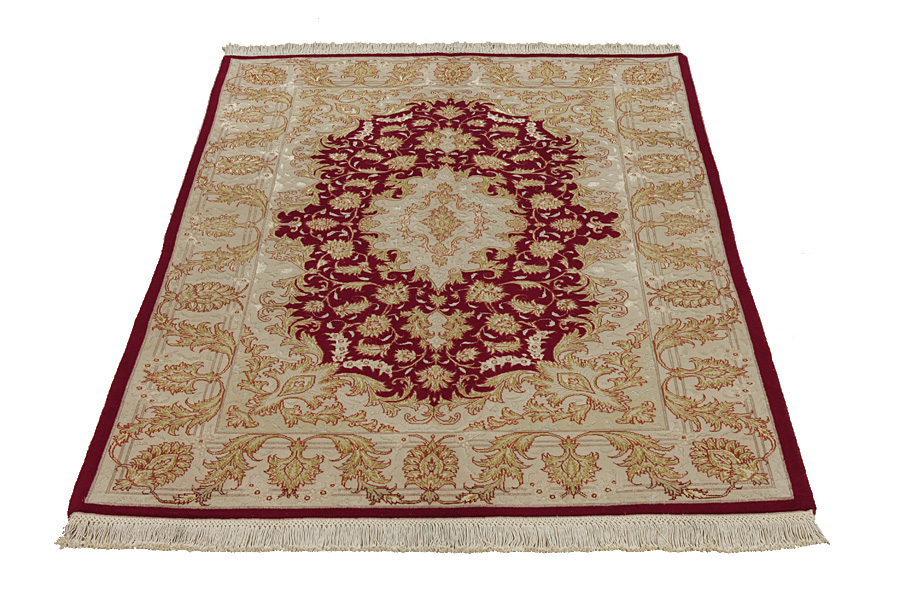 The city of Tabriz is the capital of Azerbaijan province in Northwestern Iran. Tabriz supplied the West with masterpieces that were made by renowned and very capable weavers. Their high quality of Tabriz rugs made them renowned in world markets. Many workshops where created where hand-woven rugs with very high density knots and high quality materials where woven. Silk and fine quality wool establish these rugs as very high class. No other city in Persia produced such large quantity or variety of rugs. With or without a medallion, their designs are full of imagination and individuality. Flowers, scenes, stanzas of poems often decorate them. Their predominant colours are beige, blue and red.