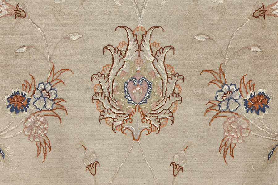 The city of Tabriz is the capital of Azerbaijan province in Northwestern Iran. Tabriz supplied the West with masterpieces that were made by renowned and very capable weavers. Their high quality of Tabriz rugs made them renowned in world markets. Many workshops where created where hand-woven rugs with very high density knots and high quality materials where woven. Silk and fine quality wool establish these rugs as very high class. No other city in Persia produced such large quantity or variety of rugs. With or without a medallion, their designs are full of imagination and individuality. Flowers, scenes, stanzas of poems often decorate them. Their predominant colours are beige, blue and red.