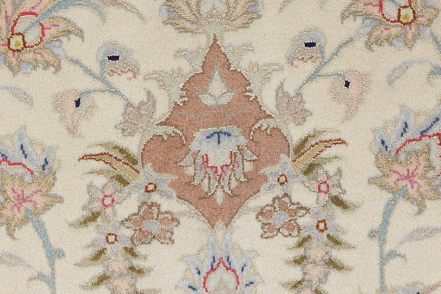 The city of Tabriz is the capital of Azerbaijan province in Northwestern Iran. Tabriz supplied the West with masterpieces that were made by renowned and very capable weavers. Their high quality of Tabriz rugs made them renowned in world markets. Many workshops where created where hand-woven rugs with very high density knots and high quality materials where woven. Silk and fine quality wool establish these rugs as very high class. No other city in Persia produced such large quantity or variety of rugs. With or without a medallion, their designs are full of imagination and individuality. Flowers, scenes, stanzas of poems often decorate them. Their predominant colours are beige, blue and red.