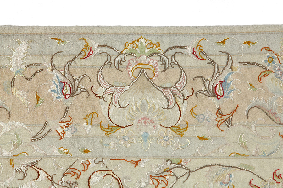 The city of Tabriz is the capital of Azerbaijan province in Northwestern Iran. Tabriz supplied the West with masterpieces that were made by renowned and very capable weavers. Their high quality of Tabriz rugs made them renowned in world markets. Many workshops where created where hand-woven rugs with very high density knots and high quality materials where woven. Silk and fine quality wool establish these rugs as very high class. No other city in Persia produced such large quantity or variety of rugs. With or without a medallion, their designs are full of imagination and individuality. Flowers, scenes, stanzas of poems often decorate them. Their predominant colours are beige, blue and red.