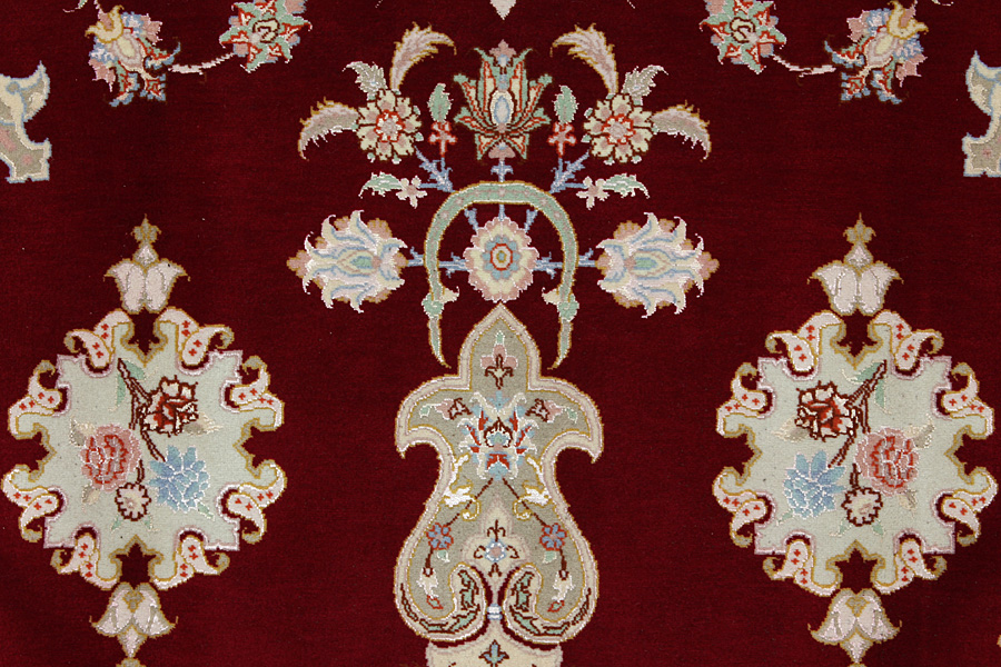 The city of Tabriz is the capital of Azerbaijan province in Northwestern Iran. Tabriz supplied the West with masterpieces that were made by renowned and very capable weavers. Their high quality of Tabriz rugs made them renowned in world markets. Many workshops where created where hand-woven rugs with very high density knots and high quality materials where woven. Silk and fine quality wool establish these rugs as very high class. No other city in Persia produced such large quantity or variety of rugs. With or without a medallion, their designs are full of imagination and individuality. Flowers, scenes, stanzas of poems often decorate them. Their predominant colours are beige, blue and red.