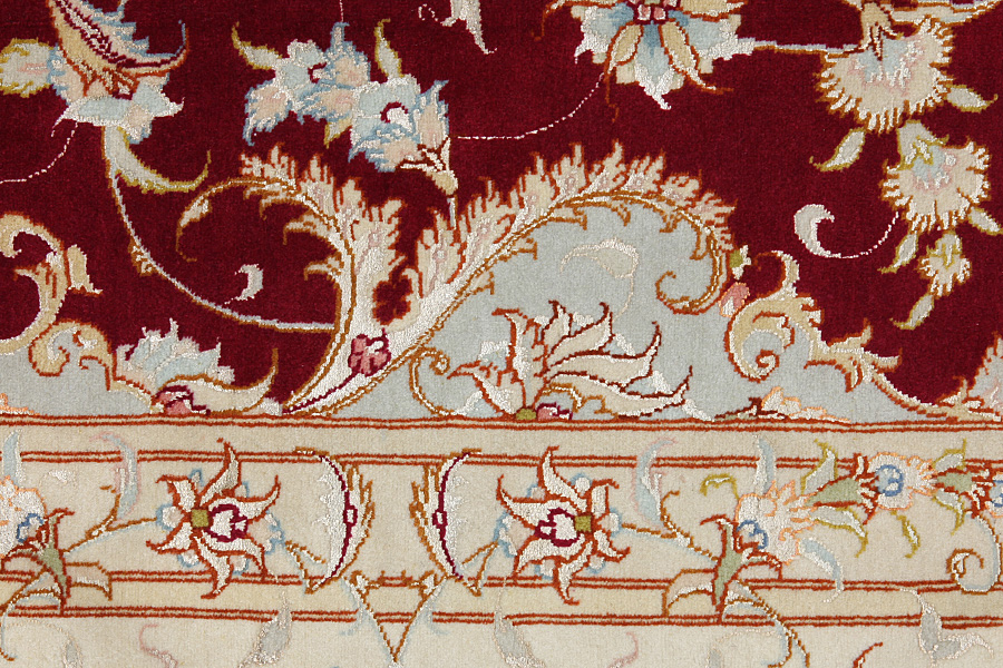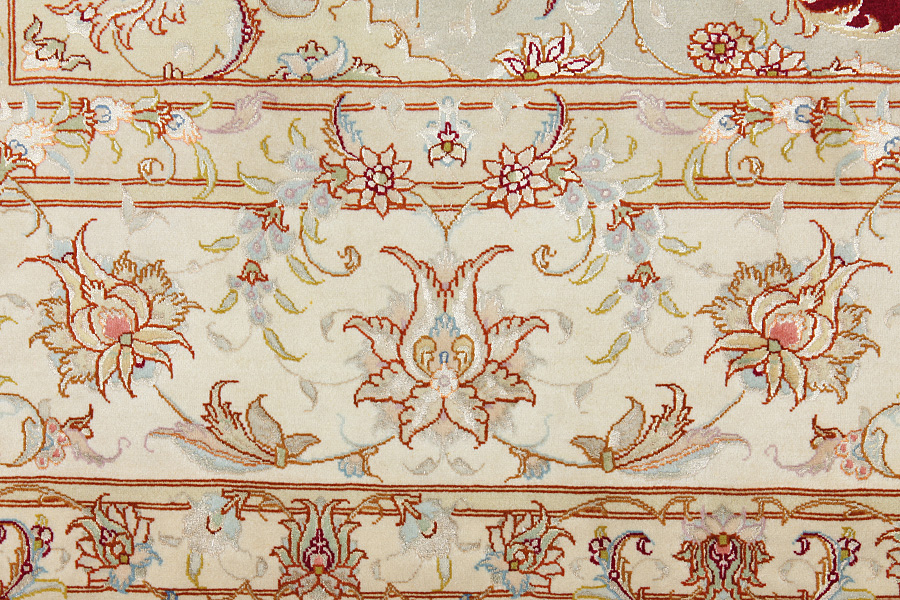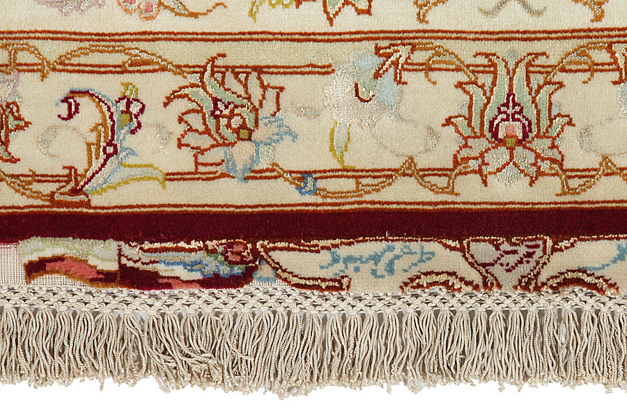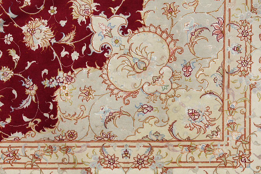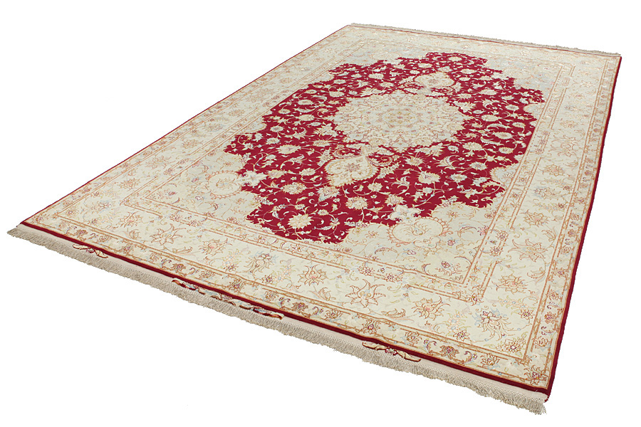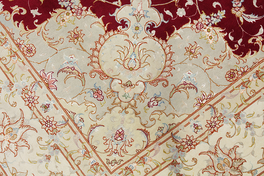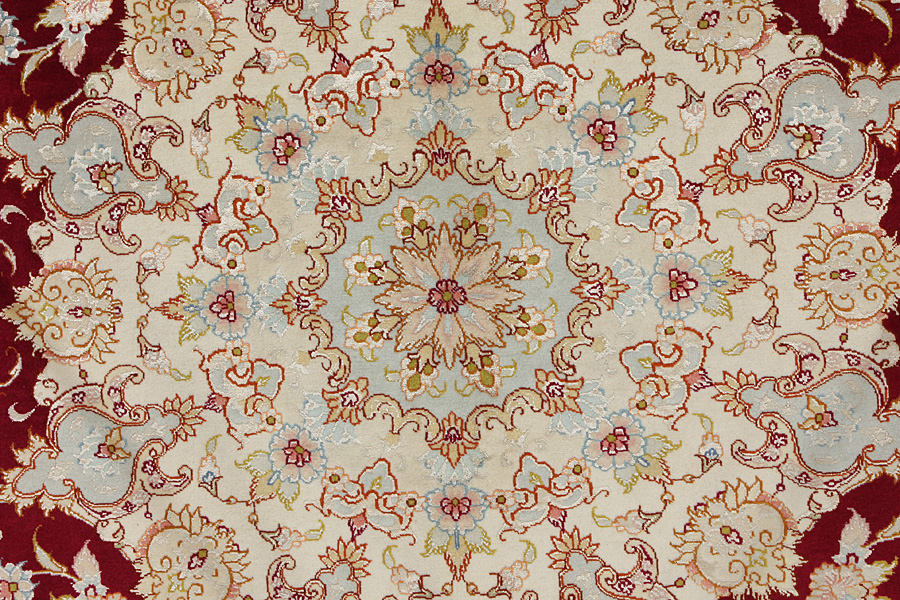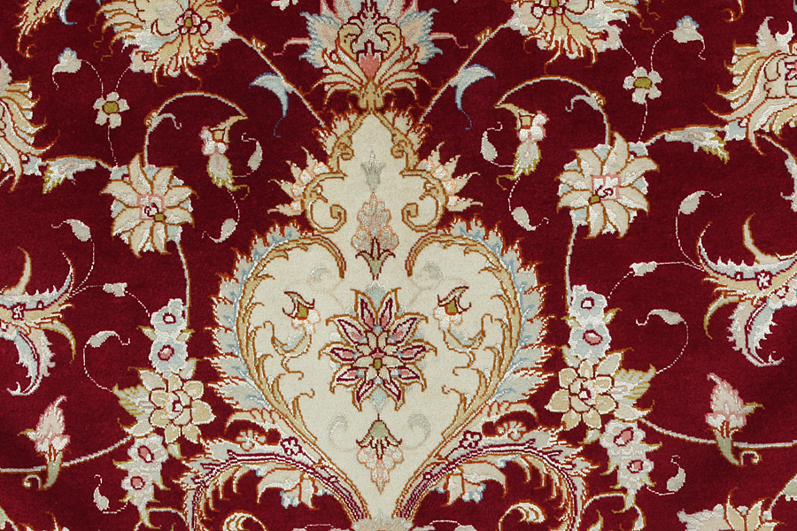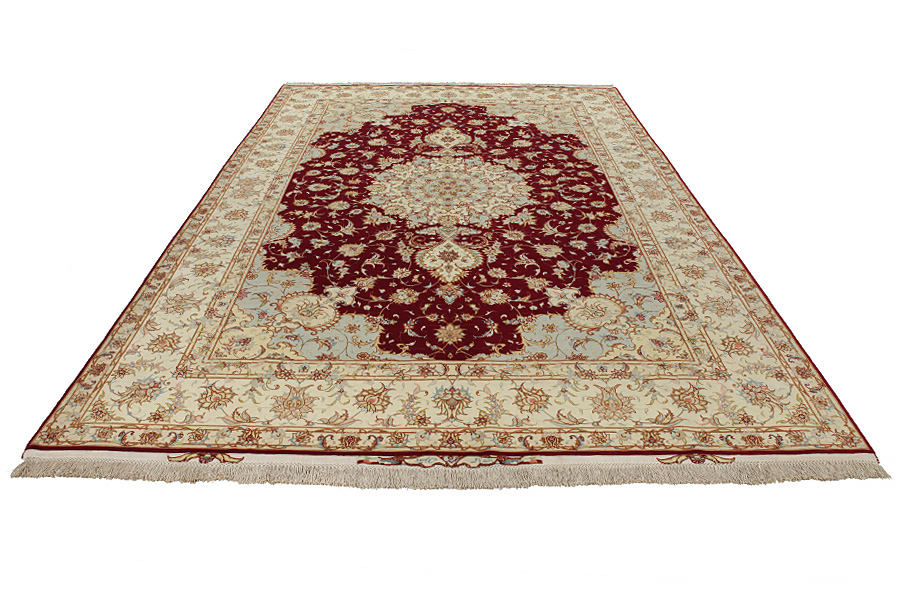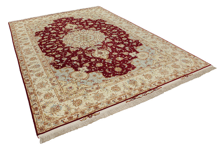 The city of Tabriz is the capital of Azerbaijan province in Northwestern Iran. Tabriz supplied the West with masterpieces that were made by renowned and very capable weavers. Their high quality of Tabriz rugs made them renowned in world markets. Many workshops where created where hand-woven rugs with very high density knots and high quality materials where woven. Silk and fine quality wool establish these rugs as very high class. No other city in Persia produced such large quantity or variety of rugs. With or without a medallion, their designs are full of imagination and individuality. Flowers, scenes, stanzas of poems often decorate them. Their predominant colours are beige, blue and red.
