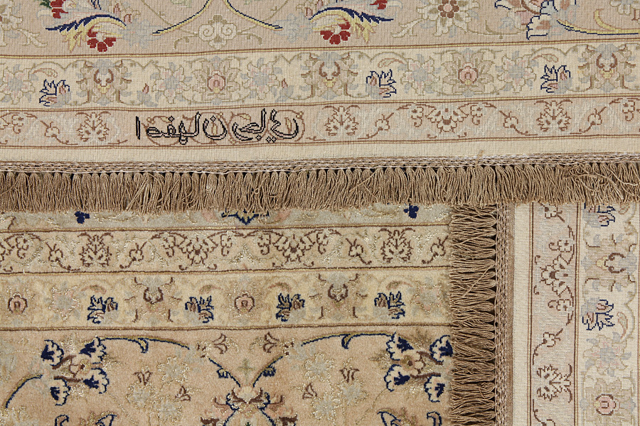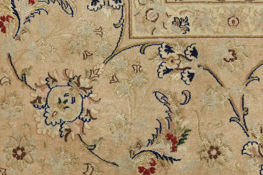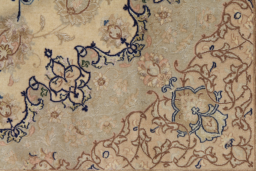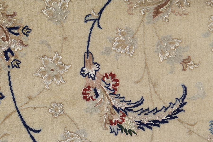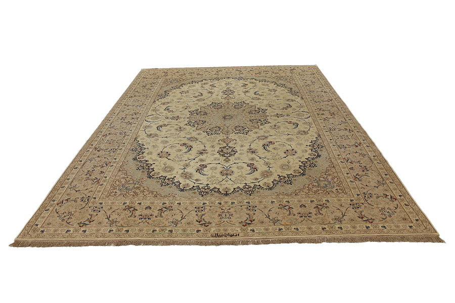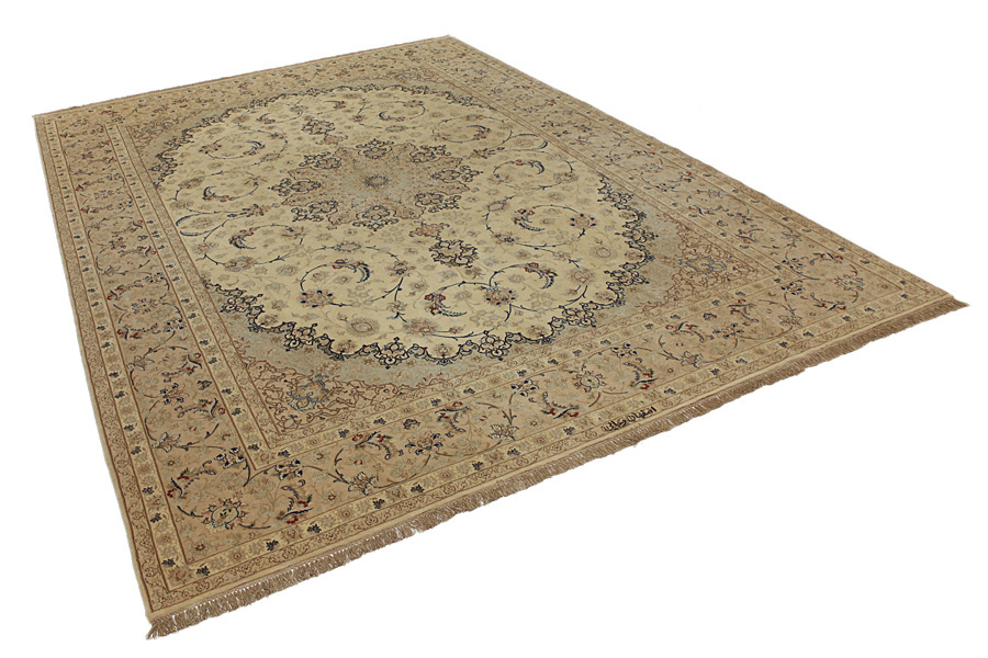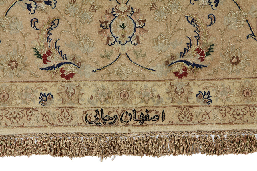In the centre of Iran among the Zagros Mountains and the desert, lies the city of Isfahan. Nowadays it is an important industrial city with a population of 1.2 million. The town is an architectural masterpiece. The old rugs of Isfahan incontrast with the newer ones didn't have got a central medallion. The entire surface of the rug was filled with elaborate spiral flowers and flower palmettes. The newer Isfahan rugs cannot be compared with those wonderful old specimens which were manufactured exclusively for nobles. But continuing the tradition, today's rugs of Isfahan also have a very fine weave and are clipped very short to reveal their design more clearly. In the weaving they also use silk to highlight certain areas of the design, especially in flowers. The warp is made of silk or cotton.