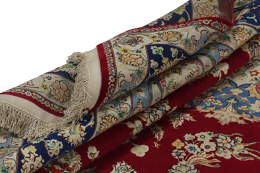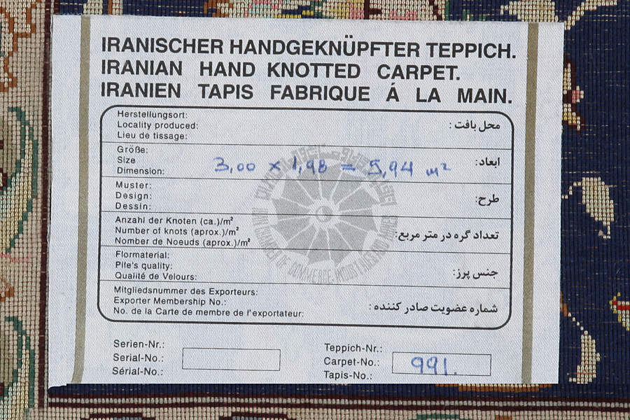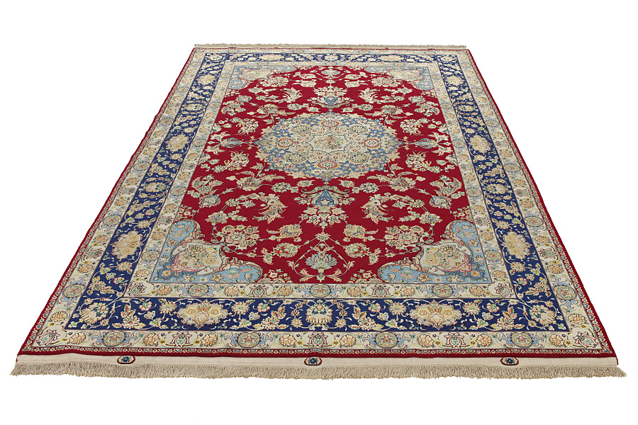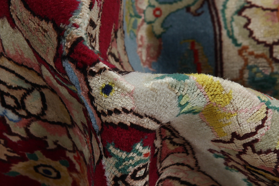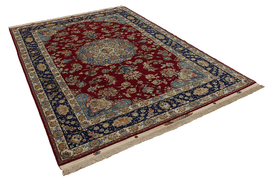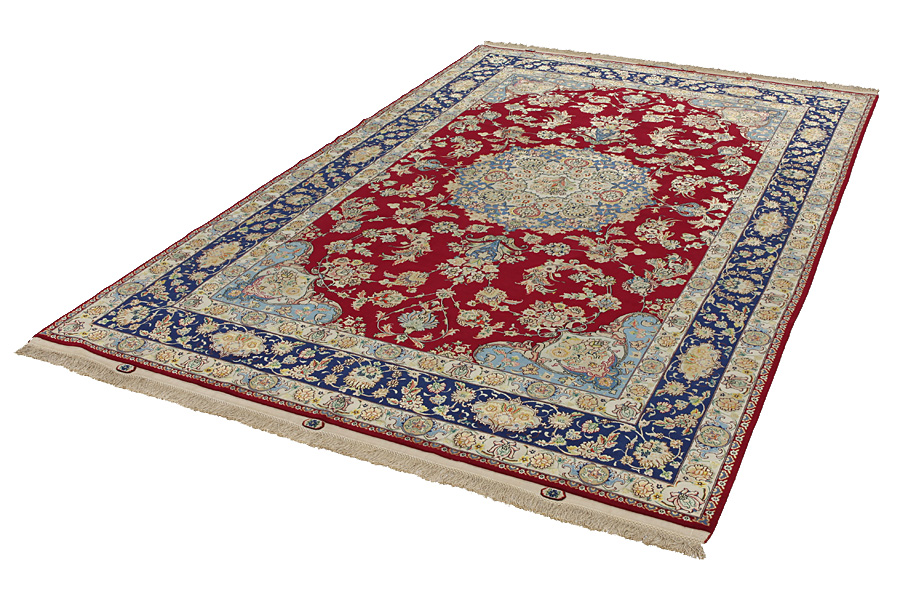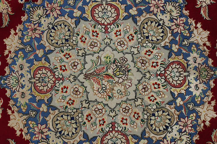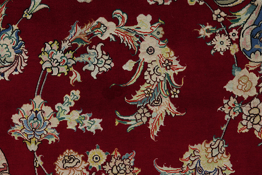 The city of Tabriz is the capital of Azerbaijan province in Northwestern Iran. Tabriz supplied the West with masterpieces that were made by renowned and very capable weavers. Their high quality of Tabriz rugs made them renowned in world markets. Many workshops where created where hand-woven rugs with very high density knots and high quality materials where woven. Silk and fine quality wool establish these rugs as very high class. No other city in Persia produced such large quantity or variety of rugs. With or without a medallion, their designs are full of imagination and individuality. Flowers, scenes, stanzas of poems often decorate them. Their predominant colours are beige, blue and red.
