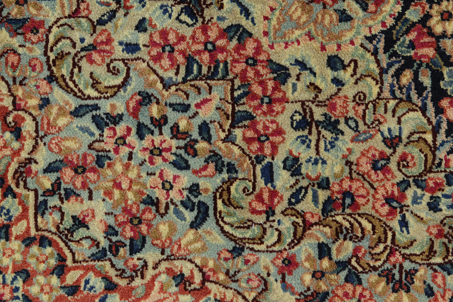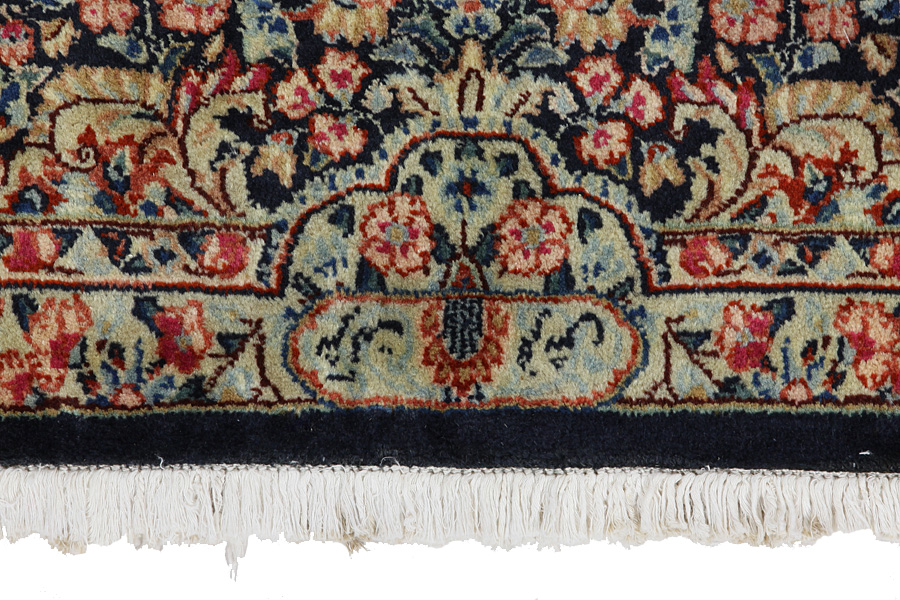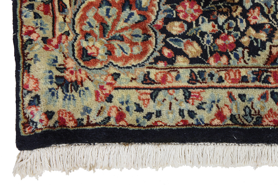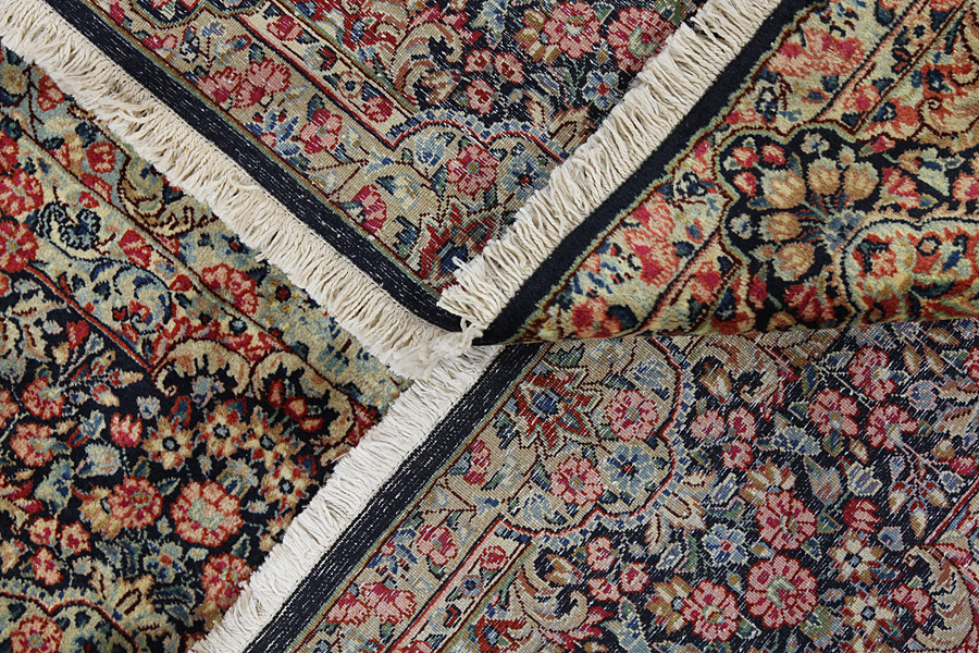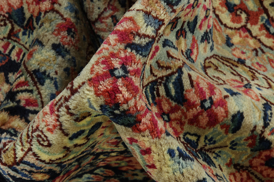 Rug weaving, an old tradition in Kerman, is one of the main industries of the city. The rugs produced in the city are renowned internationally. The oldest rug discovered in Kerman dates back 500 years, demonstrating the durabillity and quality of the rugs woven there. Also manufactured as in older times are other textile products made of cotton or wool, like shawls and delicate fabrics. Characteristic of Kerman rugs are the bright colours and the plentiness of beautiful flowers with garlands and medallions. The wool in Kerman is of very good quality with greasiness which makes it very bright.
