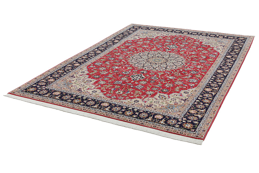 The city of Tabriz is the capital of Azerbaijan province in Northwestern Iran. Tabriz supplied the West with masterpieces that were made by renowned and very capable weavers. Their high quality of Tabriz rugs made them renowned in world markets. Many workshops where created where hand-woven rugs with very high density knots and high quality materials where woven. Silk and fine quality wool establish these rugs as very high class. No other city in Persia produced such large quantity or variety of rugs. With or without a medallion, their designs are full of imagination and individuality. Flowers, scenes, stanzas of poems often decorate them. Their predominant colours are beige, blue and red.