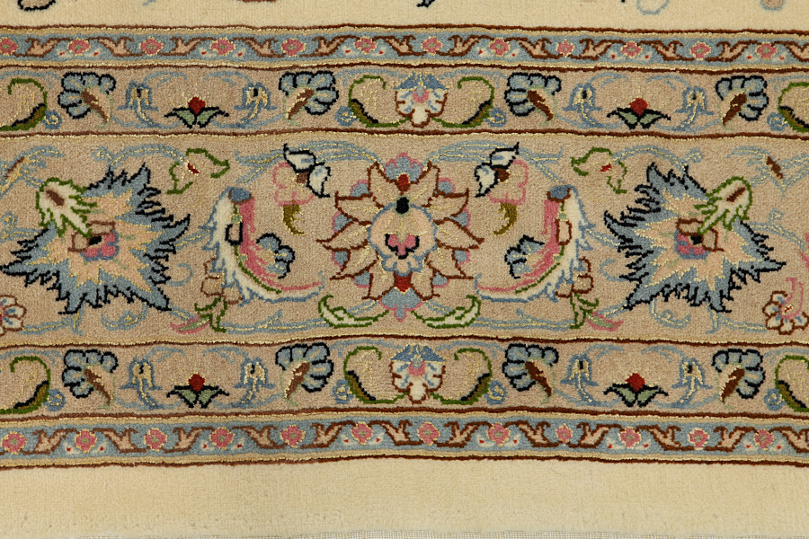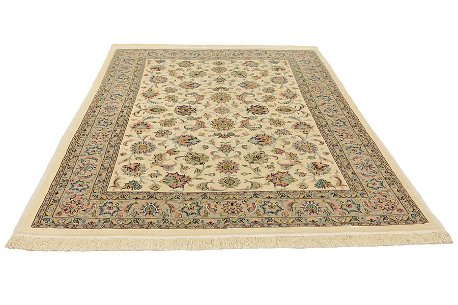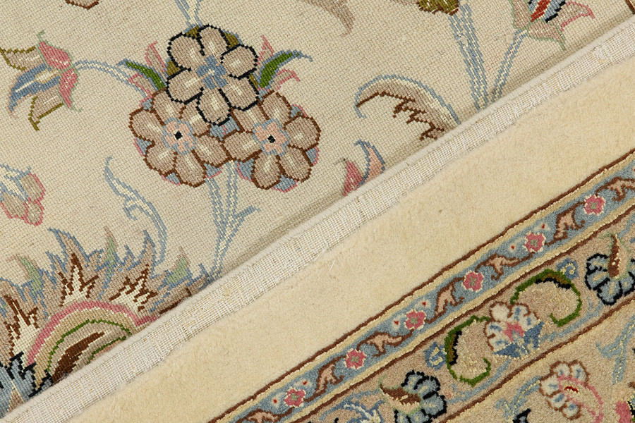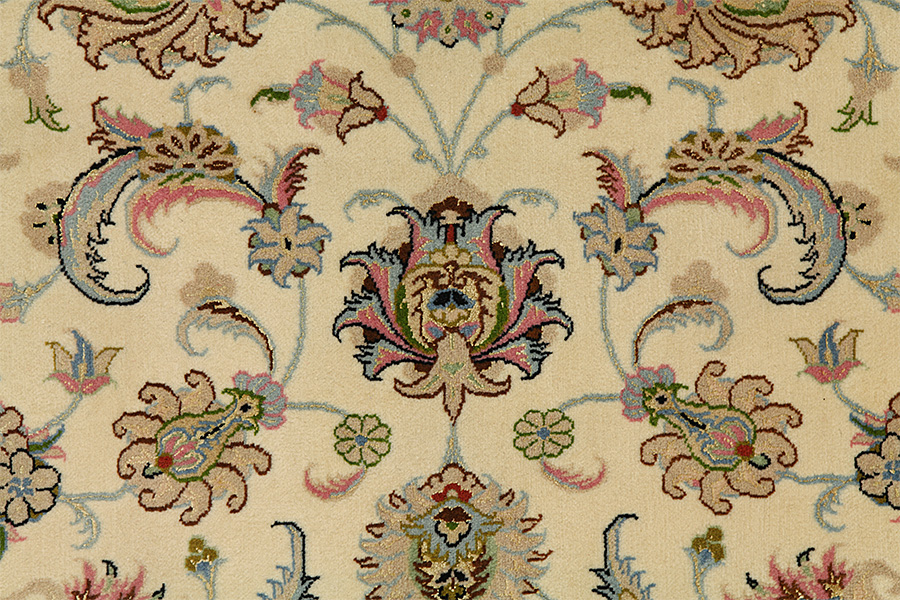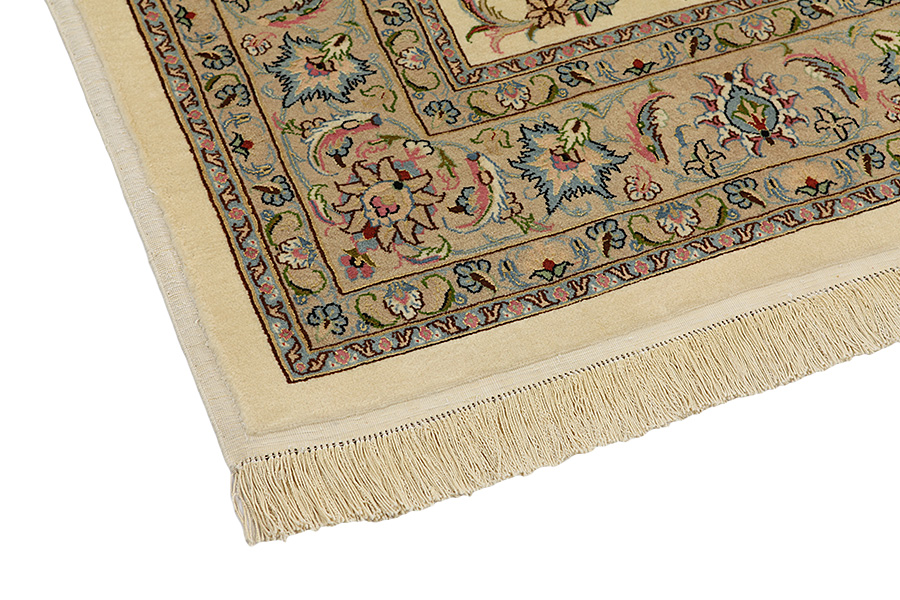 The city of Tabriz is the capital of Azerbaijan province in Northwestern Iran. Tabriz supplied the West with masterpieces that were made by renowned and very capable weavers. Their high quality of Tabriz rugs made them renowned in world markets. Many workshops where created where hand-woven rugs with very high density knots and high quality materials where woven. Silk and fine quality wool establish these rugs as very high class. No other city in Persia produced such large quantity or variety of rugs. With or without a medallion, their designs are full of imagination and individuality. Flowers, scenes, stanzas of poems often decorate them. Their predominant colours are beige, blue and red.