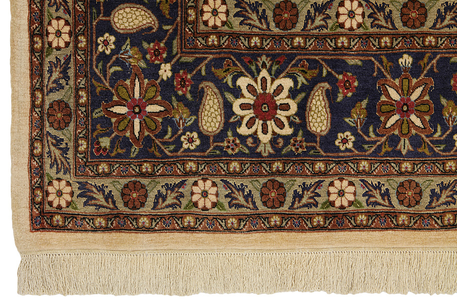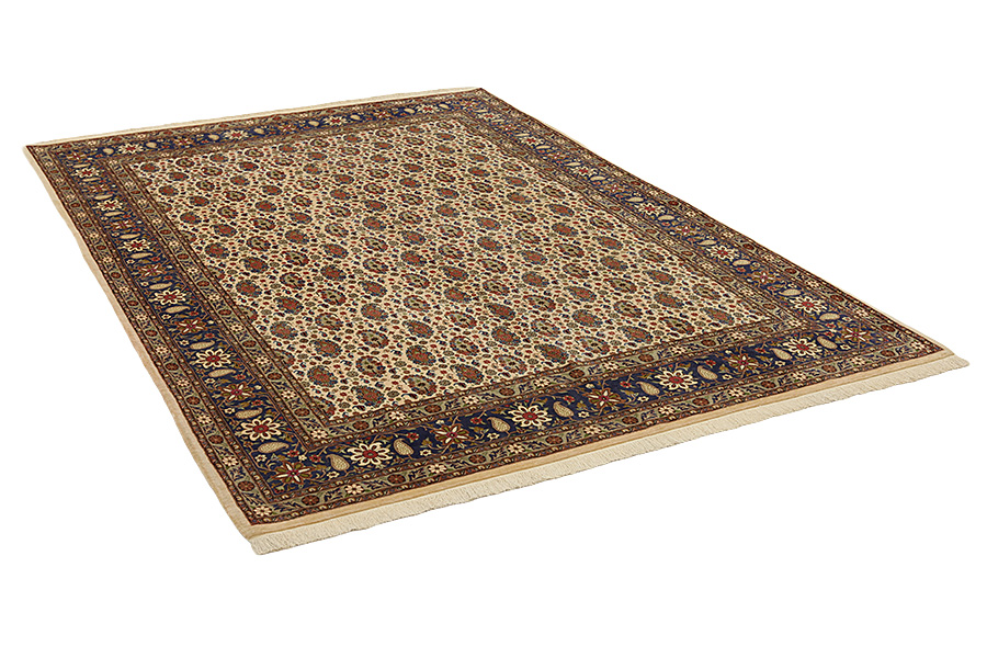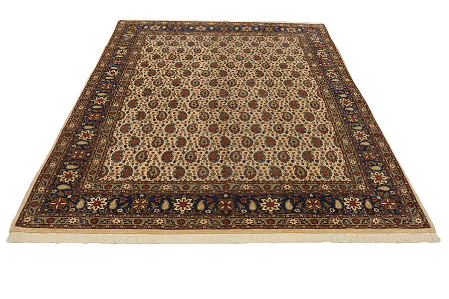 The city of Tabriz is the capital of Azerbaijan province in Northwestern Iran. Tabriz supplied the West with masterpieces that were made by renowned and very capable weavers. Their high quality of Tabriz rugs made them renowned in world markets. Many workshops where created where hand-woven rugs with very high density knots and high quality materials where woven. Silk and fine quality wool establish these rugs as very high class. No other city in Persia produced such large quantity or variety of rugs. With or without a medallion, their designs are full of imagination and individuality. Flowers, scenes, stanzas of poems often decorate them. Their predominant colours are beige, blue and red.