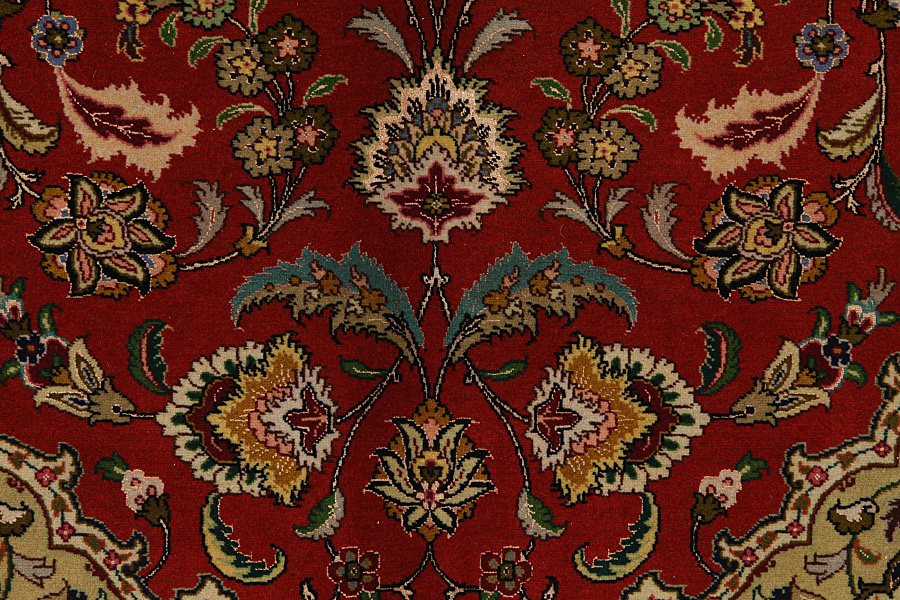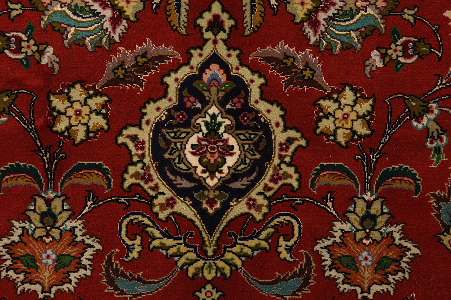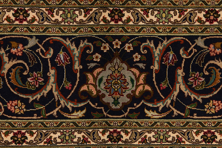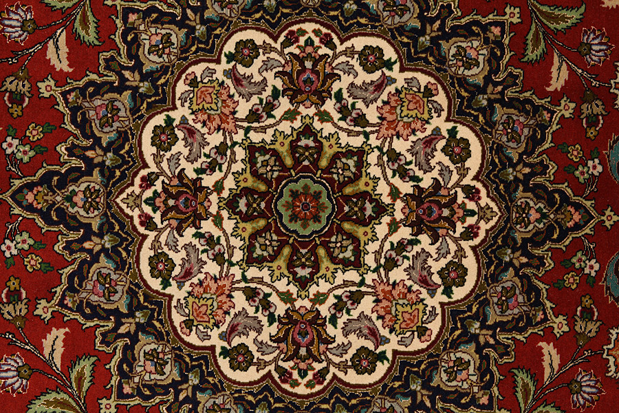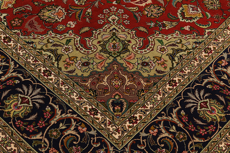 The city of Tabriz is the capital of Azerbaijan province in Northwestern Iran. Tabriz supplied the West with masterpieces that were made by renowned and very capable weavers. Their high quality of Tabriz rugs made them renowned in world markets. Many workshops where created where hand-woven rugs with very high density knots and high quality materials where woven. Silk and fine quality wool establish these rugs as very high class. No other city in Persia produced such large quantity or variety of rugs. With or without a medallion, their designs are full of imagination and individuality. Flowers, scenes, stanzas of poems often decorate them. Their predominant colours are beige, blue and red.