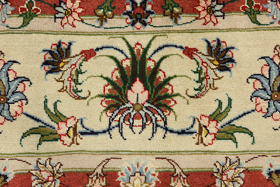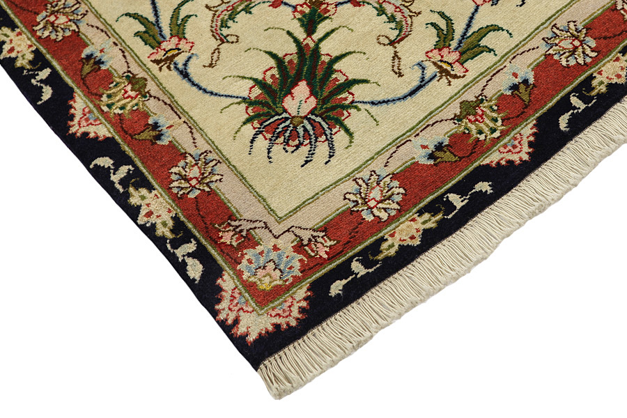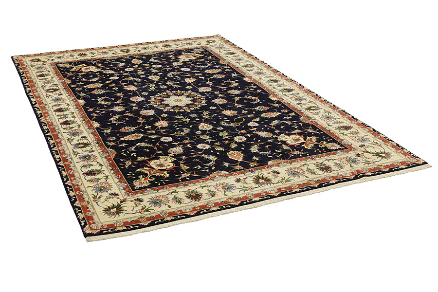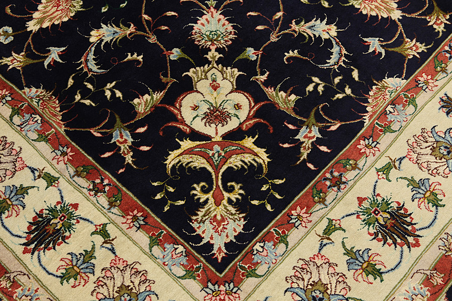 The city of Tabriz is the capital of Azerbaijan province in Northwestern Iran. Tabriz supplied the West with masterpieces that were made by renowned and very capable weavers. Their high quality of Tabriz rugs made them renowned in world markets. Many workshops where created where hand-woven rugs with very high density knots and high quality materials where woven. Silk and fine quality wool establish these rugs as very high class. No other city in Persia produced such large quantity or variety of rugs. With or without a medallion, their designs are full of imagination and individuality. Flowers, scenes, stanzas of poems often decorate them. Their predominant colours are beige, blue and red.