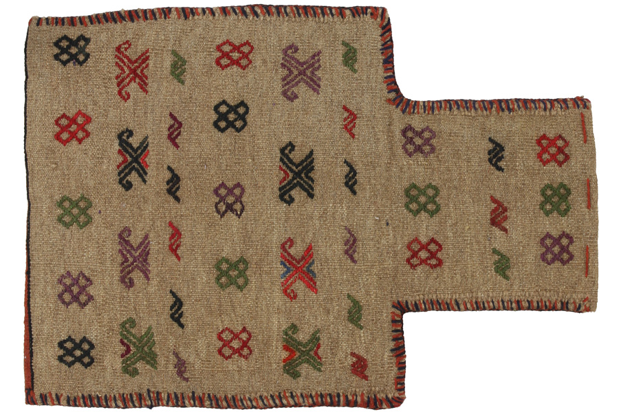 ​Horse saddle bags are made by Nomads for their own use. One can distinguish between the kilim-horse saddle bags and the knotted horse saddle bags. The front side of a knotted horse saddle bag is either knotted like a common rug with knots or different mixed techniques are used. The colours horse bags are dyed with are all natural and made by the Nomads themselves. Bags like these once carried everyday necessities for travelers on donkeys or horses. A delightful piece of art that provides a unique oriental atmosphere to your home. Horse saddle bags can be used as a seat cushion, as a floor cushion eg in front of your fireplace or as a wall decoration. Smaller horse saddle bags can be used as a newspaper holder to store newspapers or magazines when slung over a chair or sofa.