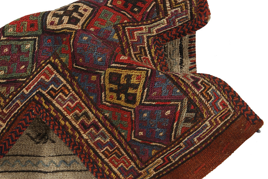 ​Horse saddle bags are made by Nomads for their own use. One can distinguish between the kilim-horse saddle bags and the knotted horse saddle bags. The front side of a knotted horse saddle bag is either knotted like a common rug with knots or different mixed techniques are used. The colours horse bags are dyed with are all natural and made by the Nomads themselves. Bags like these once carried everyday necessities for travelers on donkeys or horses. A delightful piece of art that provides a unique oriental atmosphere to your home. Horse saddle bags can be used as a seat cushion, as a floor cushion eg in front of your fireplace or as a wall decoration. Smaller horse saddle bags can be used as a newspaper holder to store newspapers or magazines when slung over a chair or sofa.