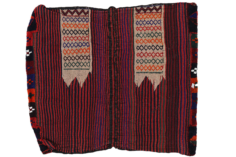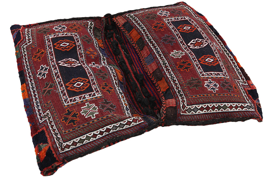 ​Horse saddle bags are made by Nomads for their own use. One can distinguish between the kilim-horse saddle bags and the knotted horse saddle bags. The front side of a knotted horse saddle bag is either knotted like a common rug with knots or different mixed techniques are used. The colours horse bags are dyed with are all natural and made by the Nomads themselves. Bags like these once carried everyday necessities for travelers on donkeys or horses. A delightful piece of art that provides a unique oriental atmosphere to your home. Horse saddle bags can be used as a seat cushion, as a floor cushion eg in front of your fireplace or as a wall decoration. Smaller horse saddle bags can be used as a newspaper holder to store newspapers or magazines when slung over a chair or sofa.