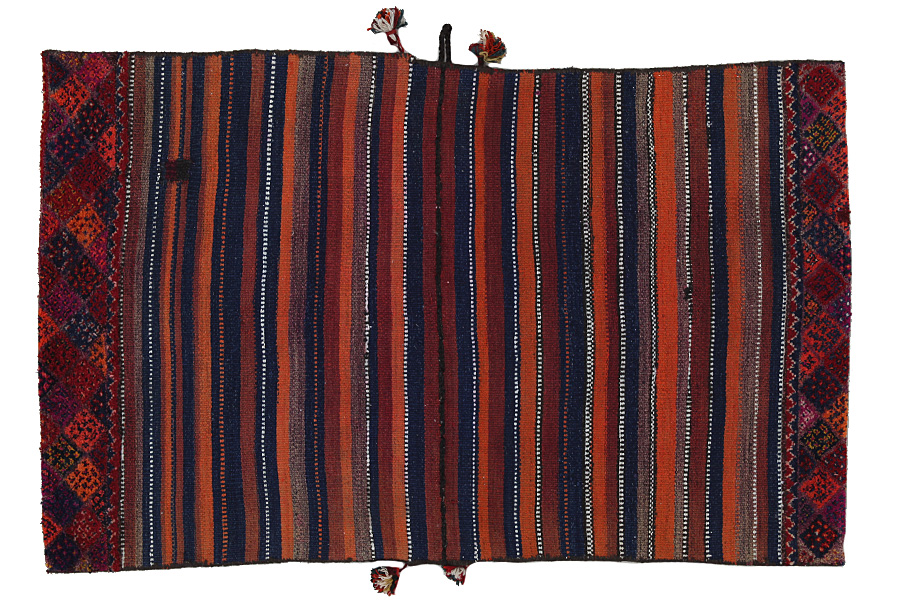 ​Horse saddle bags are made by Nomads for their own use. One can distinguish between the kilim-horse saddle bags and the knotted horse saddle bags. The front side of a knotted horse saddle bag is either knotted like a common rug with knots or different mixed techniques are used. The colours horse bags are dyed with are all natural and made by the Nomads themselves. Bags like these once carried everyday necessities for travelers on donkeys or horses. A delightful piece of art that provides a unique oriental atmosphere to your home. Horse saddle bags can be used as a seat cushion, as a floor cushion eg in front of your fireplace or as a wall decoration. Smaller horse saddle bags can be used as a newspaper holder to store newspapers or magazines when slung over a chair or sofa.