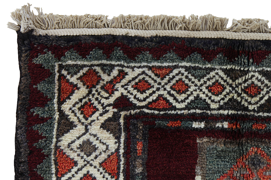 Gabbeh in Farsi means natural, primitive. Rugs and rugs with this name are woven by the nomads Qashqai who roam about, or in villages in Southwestern Iran where they live. The yarns are processed and twisted by hand, painted with herbal colours and woven with a wool warp up to 2 cm thick. These rugs are simple, with few designs, or monochrome. The simple, linear designs with animals and human figures give them a contemporary look. Various names are given to Gabbeh rugs such asBasic, Amalehbaft, Kashkooli, Luribaft and Sumak. Gabbeh Kashkooli is a rug with high knot density and thinner than ordinary Persian Gabbeh rugs. The Persian Gabbeh is very durable and its quality is very good.