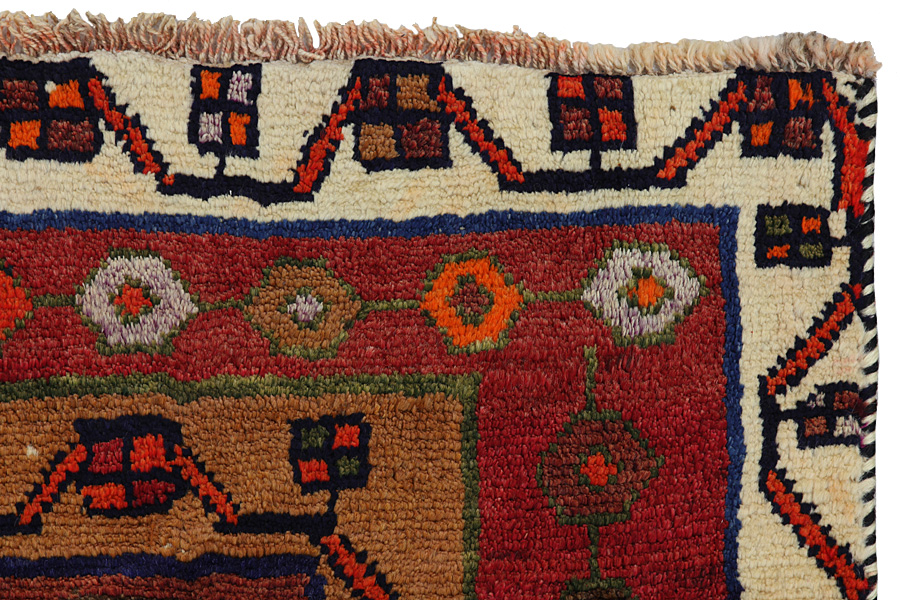 Rugs woven by the Lurs, a nomadic tribe in the mountainous Kurdish region of Southwest Iran, bordering Iraq. The Lori rugs usually have geometric shapes, often with rhombi and strictly linear scenes of the herbal and animal world. Because the areas where the Lurs live are inaccessible and isolated, they still weave with the old traditional ways, without influences from the Europeans. The centre of Luristan is Choremabad, which gave its name to the rugs woven there. Furthermore rugs have been named after the salt lake Neris.