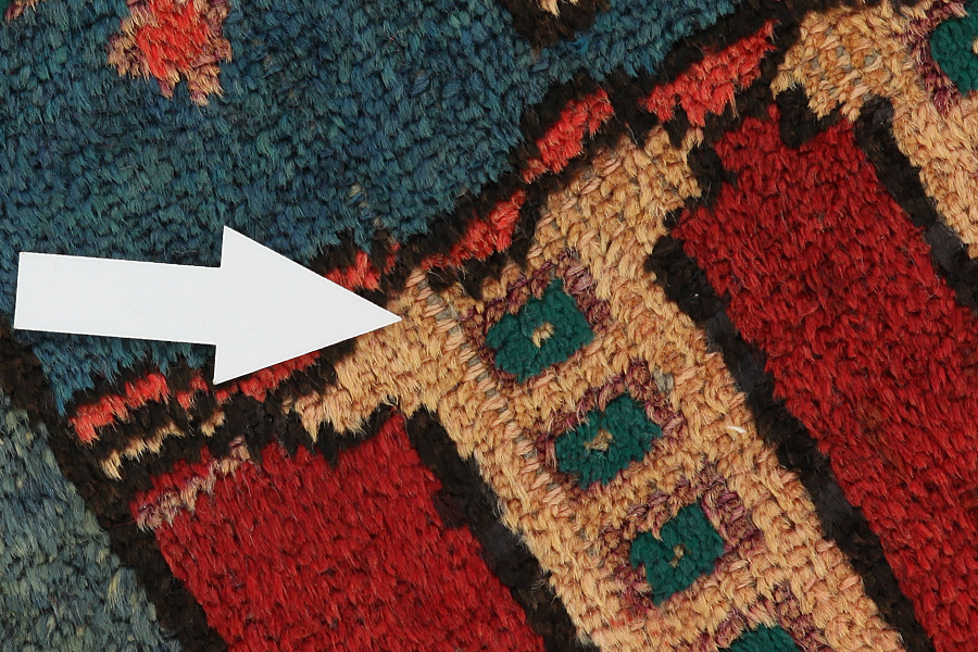 Abrash: Due to the different amount of grease in the wool and the added salt during the process of dyeing, the wool has got a varying colour absorbance. This is not very visible before weaving. During the weaving though, lines of the same colour are formed in the rug. This is called Abrash (which in Farsi means little cloud) and it shows that the wool was not manufactured using chemical means and marks the naturalness and authenticity of the rugs. Examples