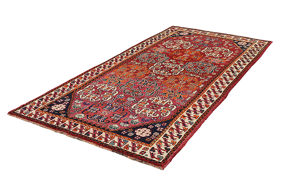 Qashqai rugs are woven by nomads who live in the mountainous areas of Southwest Persia, the provinces of Fars, Khuzestan, south of Isfahan and around the city Shiraz. Their rugs have a high knot density and a wide variety of designs, usually in deep red and blue colours. They weave rugs, Kilims and decorative textiles (ribbons, bags, etc.), which depict scenes from their lives with various representation of humans, animals, birds, trees and flowers.