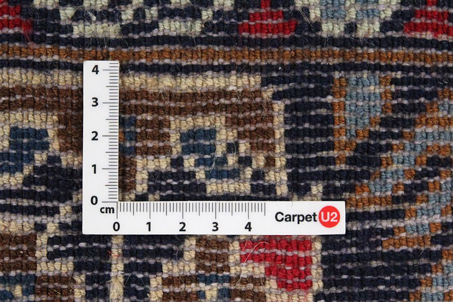 Abrash: Due to the different amount of grease in the wool and the added salt during the process of dyeing, the wool has got a varying colour absorbance. This is not very visible before weaving. During the weaving though, lines of the same colour are formed in the rug. This is called Abrash (which in Farsi means little cloud) and it shows that the wool was not manufactured using chemical means and marks the naturalness and authenticity of the rugs. Examples