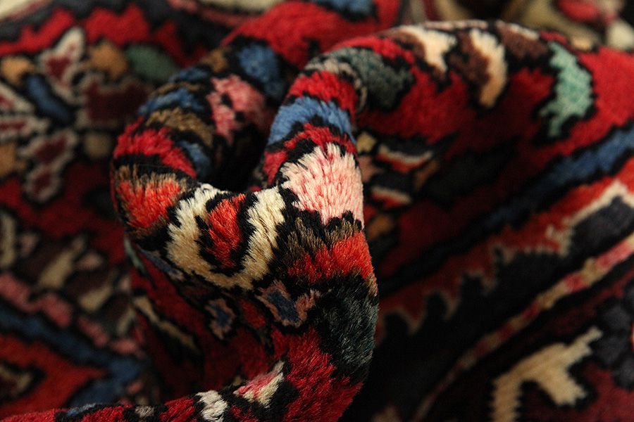 Abrash: Due to the different amount of grease in the wool and the added salt during the process of dyeing, the wool has got a varying colour absorbance. This is not very visible before weaving. During the weaving though, lines of the same colour are formed in the rug. This is called Abrash (which in Farsi means little cloud) and it shows that the wool was not manufactured using chemical means and marks the naturalness and authenticity of the rugs. Examples